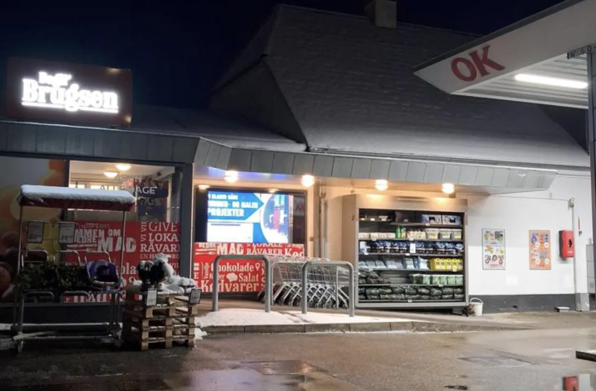 Skærmen er placeret i Brugsen på torvet i Astrup.